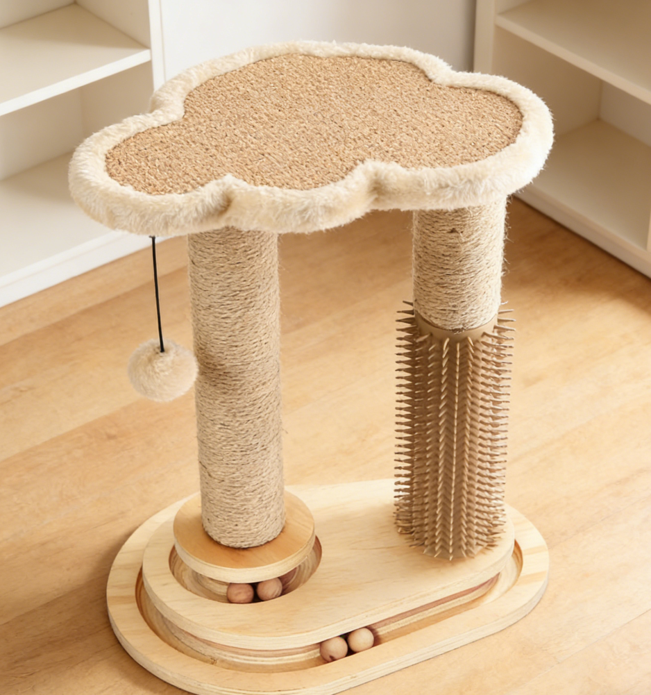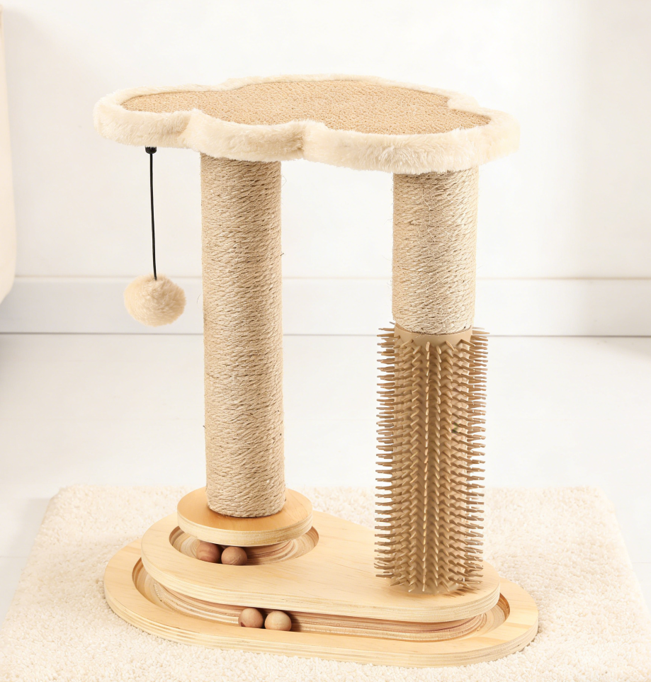 Natural Sisal Cat Scratching Post with Soft Perch and Ball Track (Four Pack)