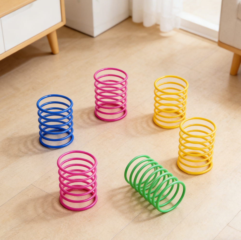 Pet Wide Plastic Cat Spring Toy Spiral Coils in Assorted Colours (Three Hundred Pack)