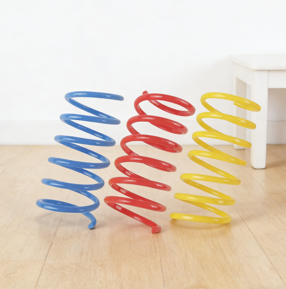 This toy set features multiple spiral coil toys designed for interactive indoor play and movement.